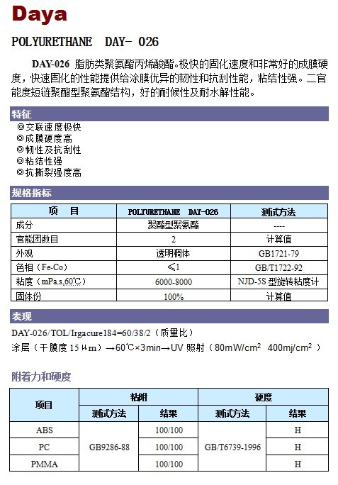 固化速度和成膜硬度最高的一款脂肪類2官PUA樹脂