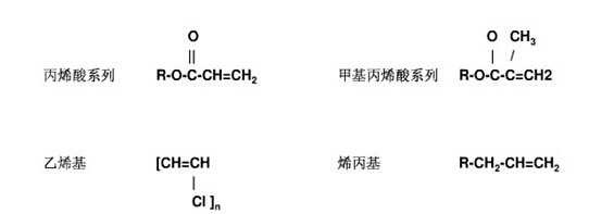 基團反應活性的排序為:丙烯酸系列>甲基丙烯酸系列>乙烯基>烯丙基