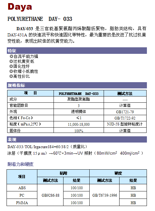 低黃變快速流平類聚氨酯