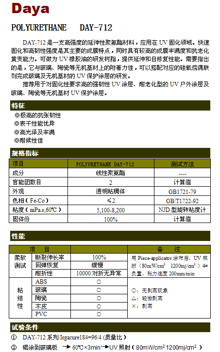 快速固化和高韌性強度,較高的成膜豐滿度和抗老化黃變能力