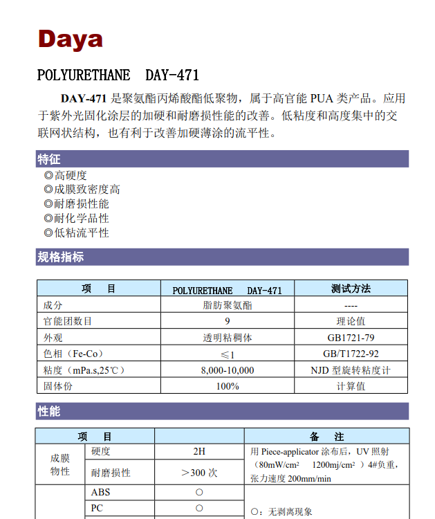 超耐磨、耐干絲絨擦拭的7官能度聚氨酯低聚物(低粘度)